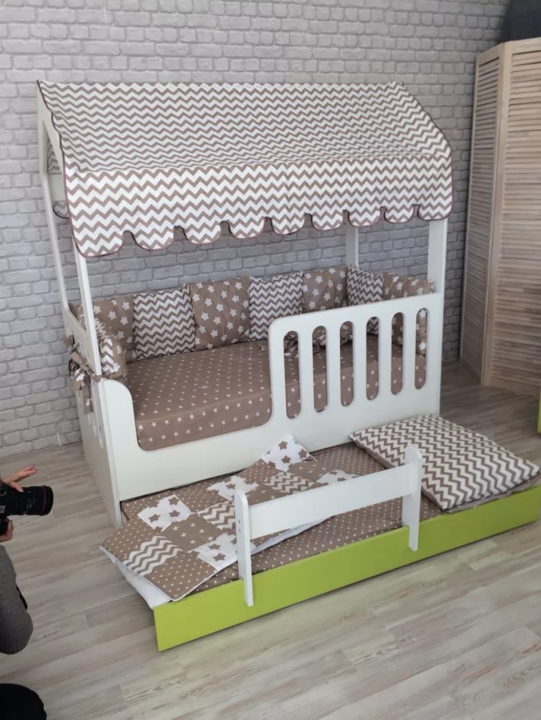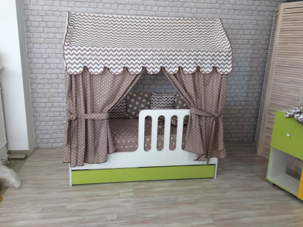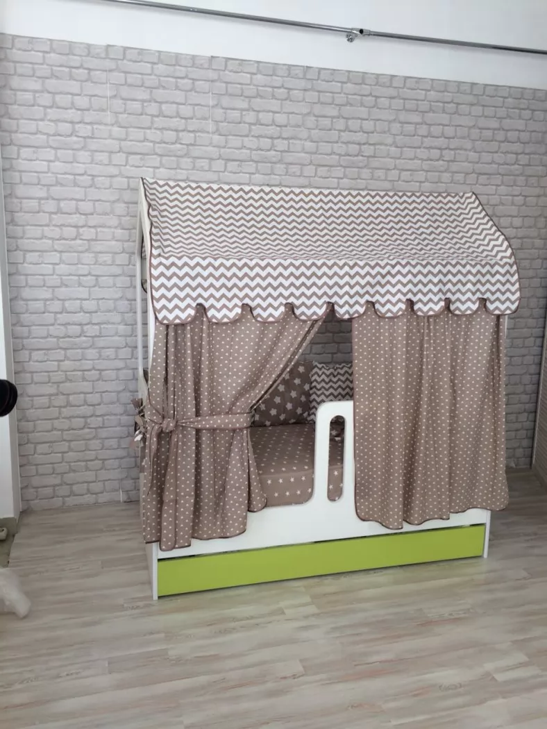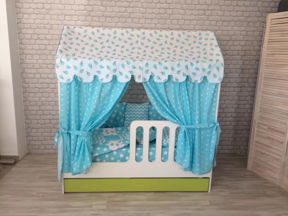 Кровати-домики можно доукомплектовать аксессуарами из текстиля: