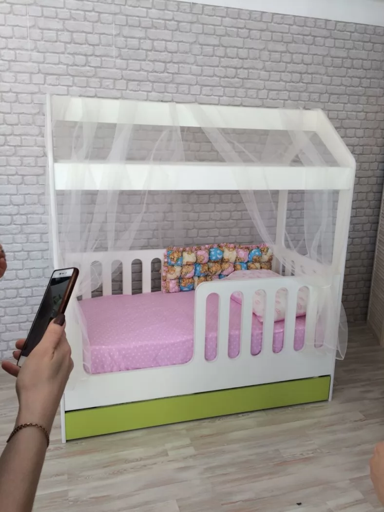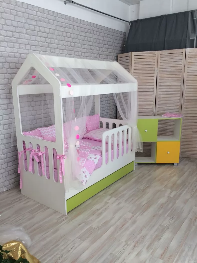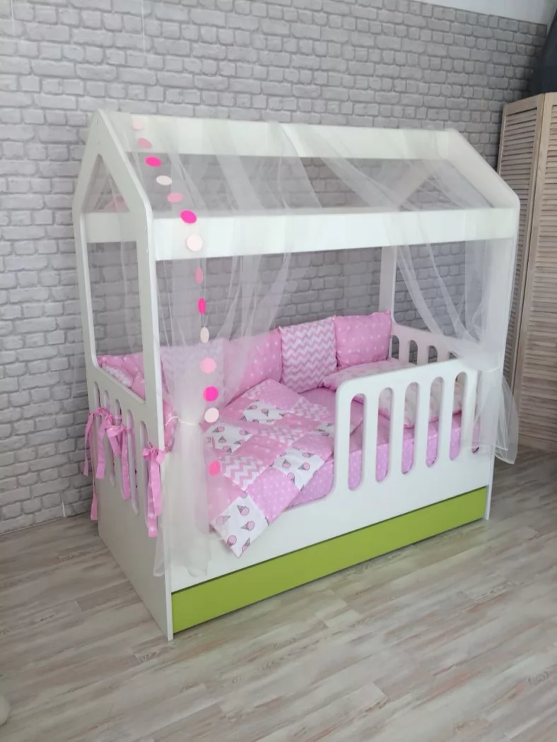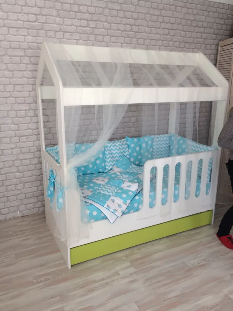 Кровати-домики можно доукомплектовать аксессуарами из текстиля: