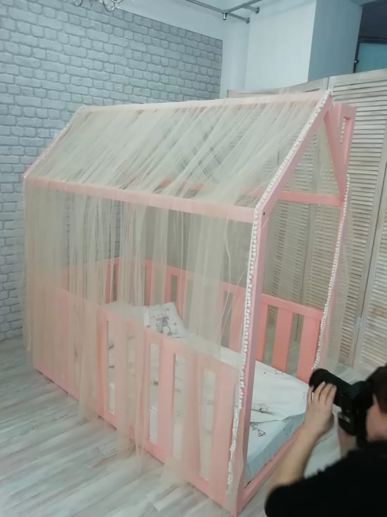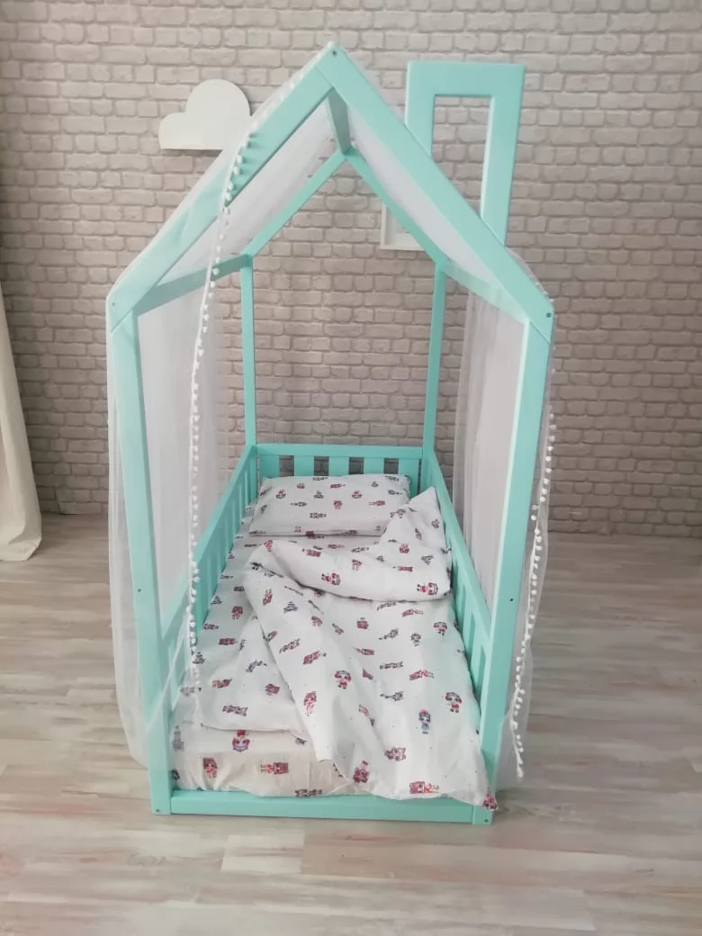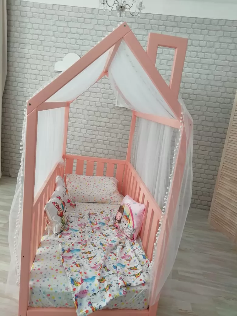 Кровати-домики можно доукомплектовать аксессуарами из текстиля: