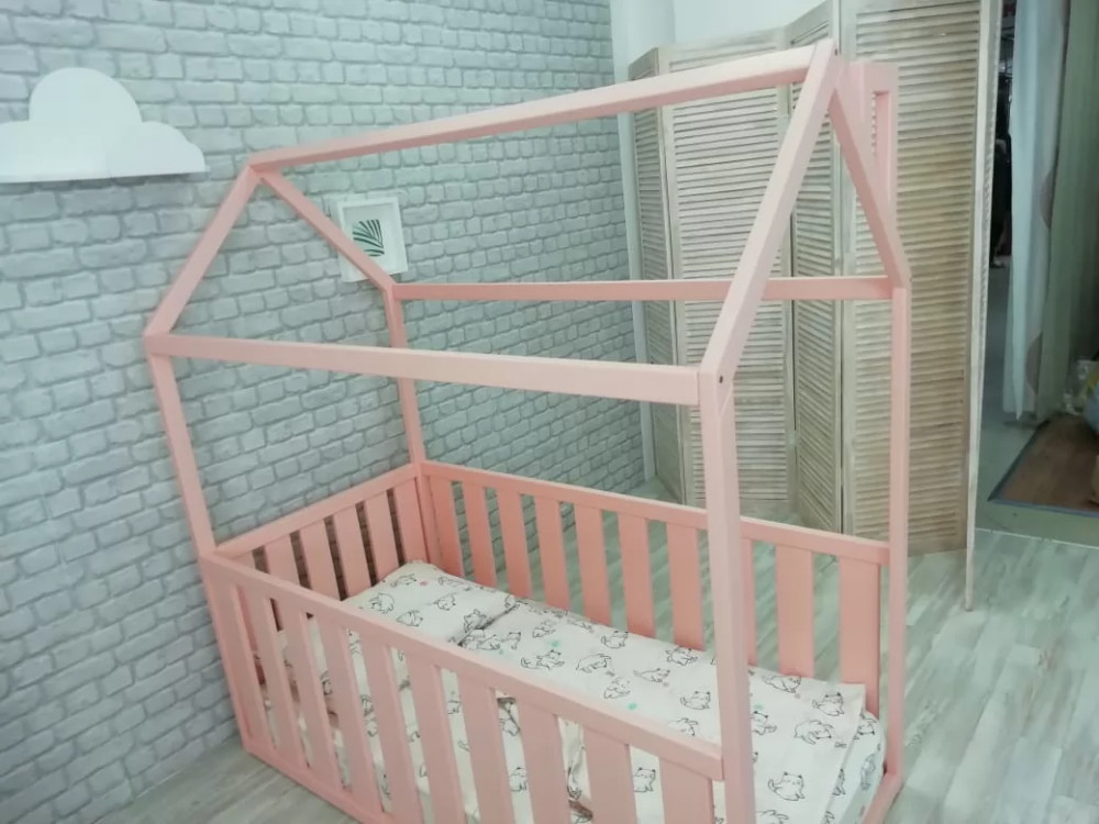 Детская кровать-домик с ящиком розовыйМатериалы:
