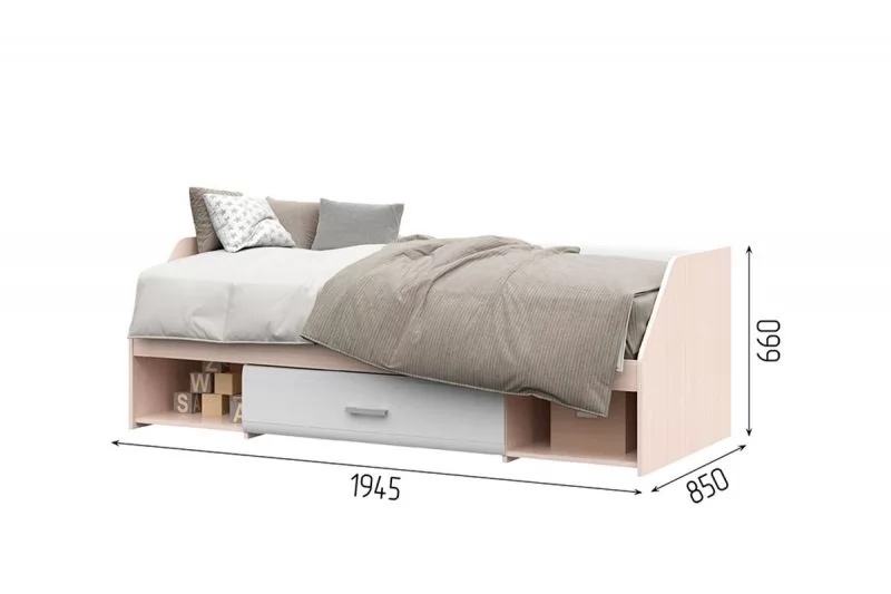СИМБА Кровать 1яр. с 1ящ (сп/м 800*1900мм), Белый глянец НАСТИЛ