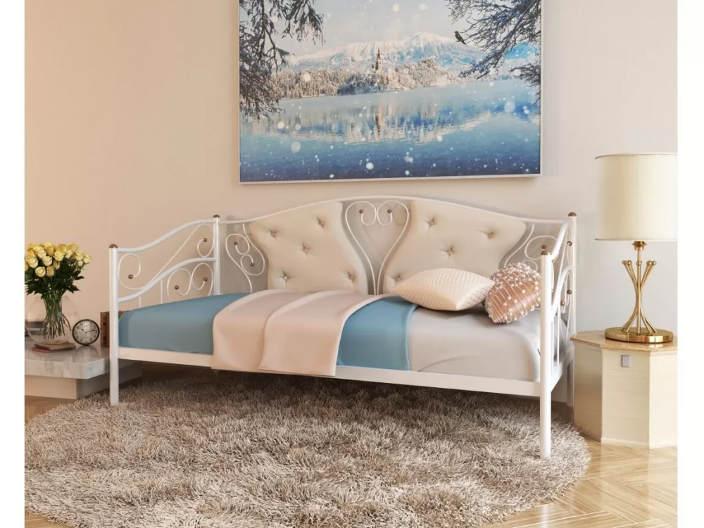 Кровать "Орион" КМД16 КРЕМОВО-БЕЛАЯ (1400*2000) (ножки-кремово-белый)