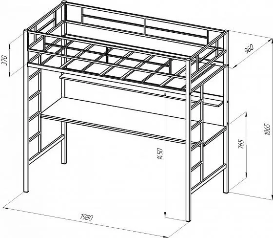 Кровать чердак с рабочей поверхностью и полкой Севилья-1.2