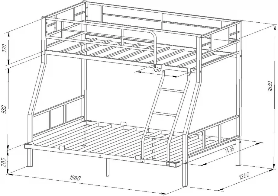 Размер нижнего спального места: 1400х1900 мм