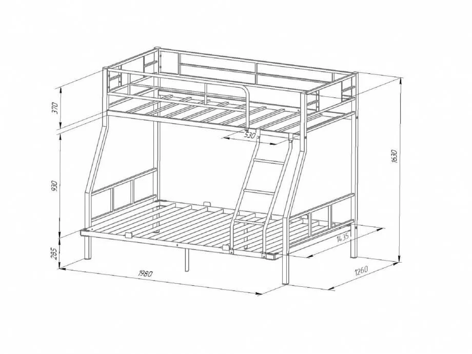 Размер нижнего спального места: 1400х1900 мм