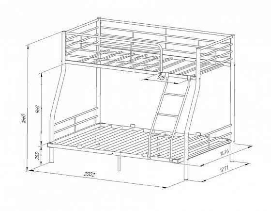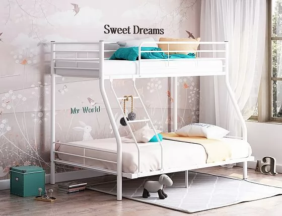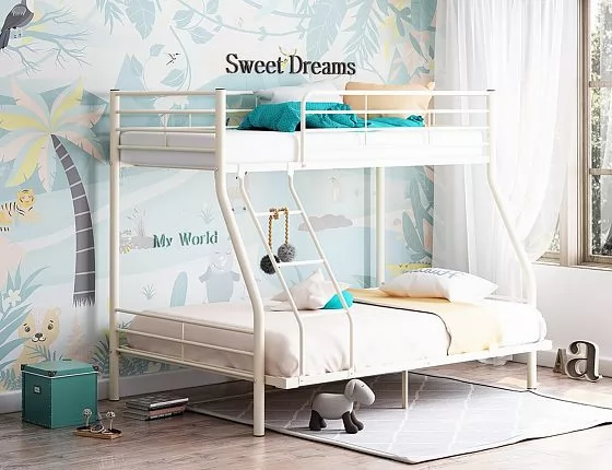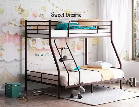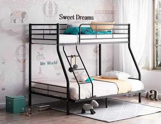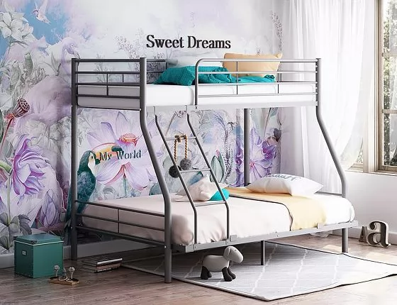 Оригинальная конструкция кровати "Гранада-2 140" предусматривает наличие двух параллельно расположенных спальных мест разного размера: 900*1900 мм и 1400*1900 мм. Кровать изготовлена из металла, что позволяет ей выдерживать нагрузку до 180 кг на одно спальное место. Высокая прочность кровати позволяет использовать ее как в детской, так и во взрослой спальне. В комплект входит металлическая лестница, которая может быть смонтирована на любой удобной стороне.