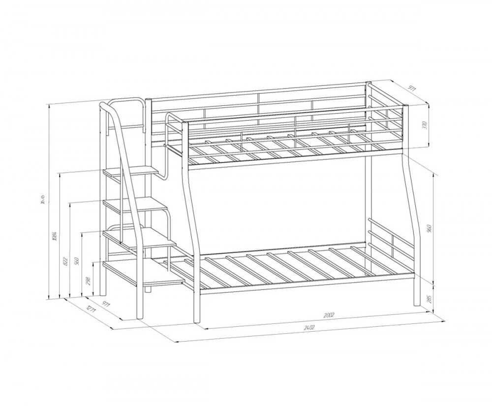 Размер нижнего спального места: 1200х1900 мм