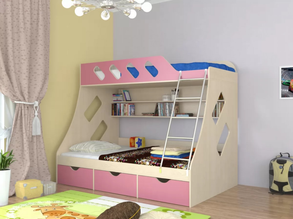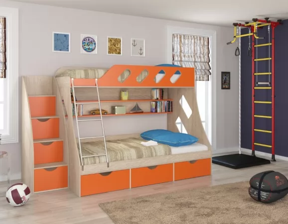 Компактная двухъярусная кровать "Дельта-20.01" подойдет для детской комнаты, в которой живут двое детей или подростков, так как в нее входят два полноценных спальных места размером 90*190 см и 120*190 см. Такая конструкция позволяет значительно экономить пространство комнаты.
