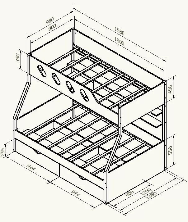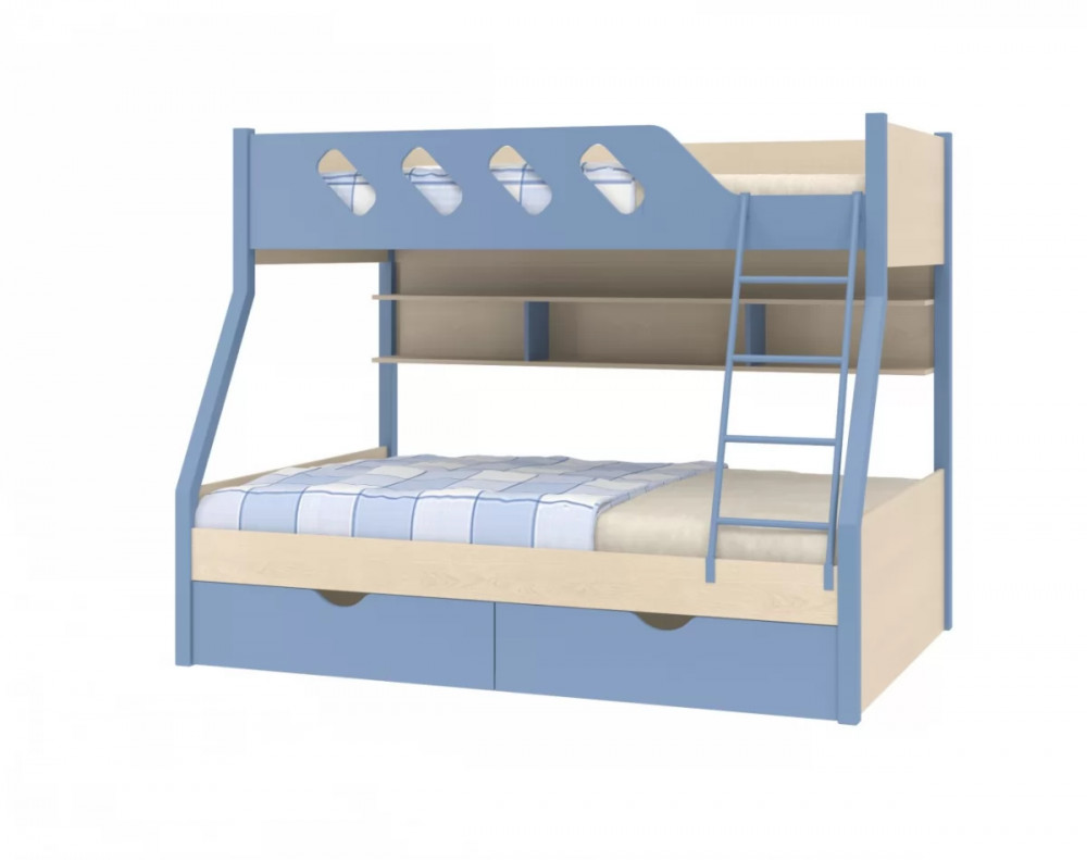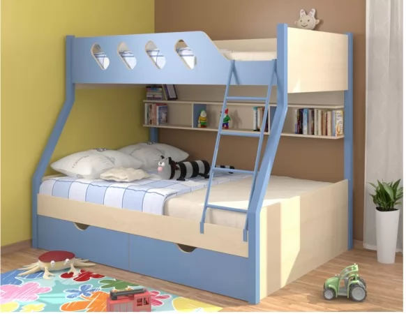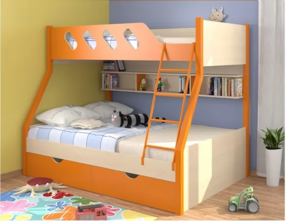 Компактная двухъярусная кровать "Дельта-20.02" подойдет для детской комнаты, в которой живут двое детей или подростков, так как в нее входят два полноценных спальных места размером 90*190 см и 120*190 см. Такая конструкция позволяет значительно экономить пространство комнаты.