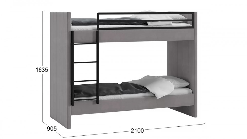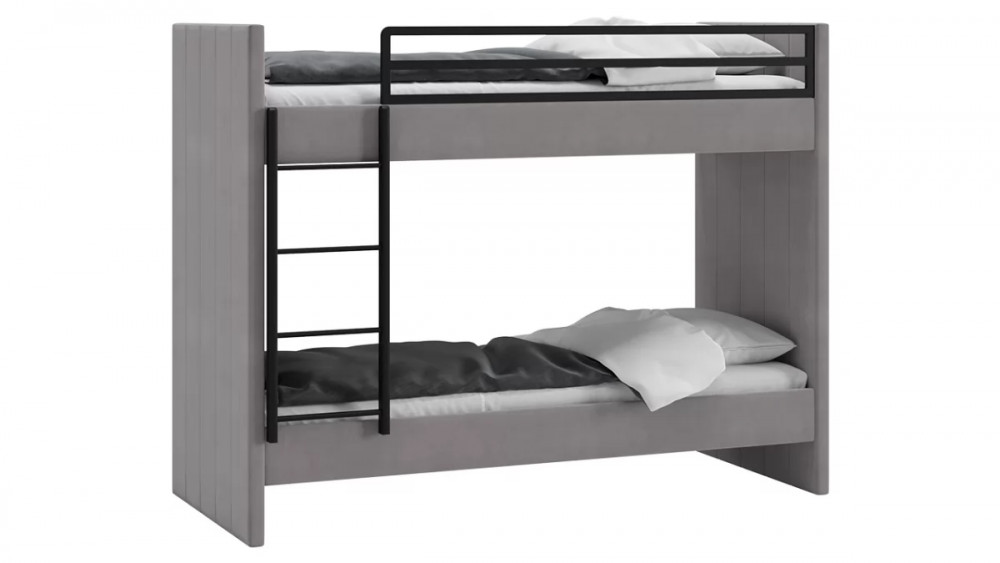 Кровать двухъярусная с мягкой обивкой «Дарси» Велюр Светло-серый