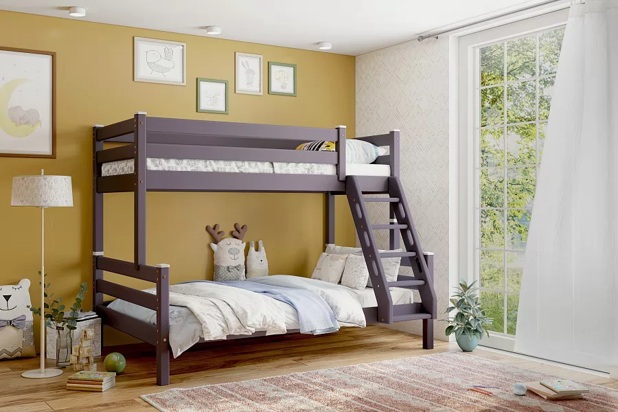 Продуманная конструкция и качественные материалы делают двухъярусную кровать Адель отличным выбором для двух детей, живущих в одной комнате. Модель оснащена бортиком безопасности и наклонной лестницей для легкого доступа к верхнему уровню.