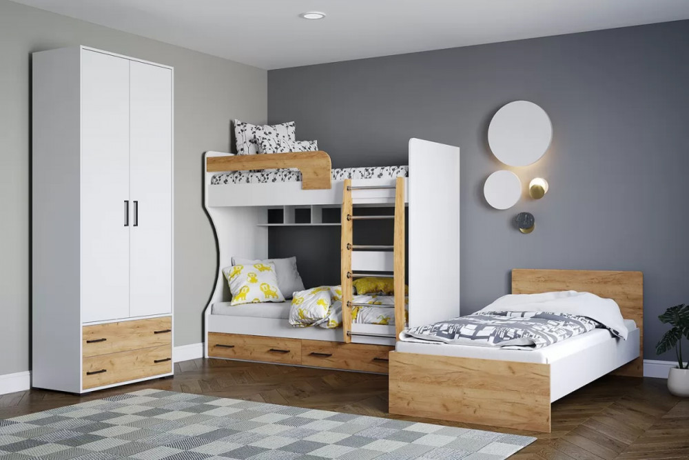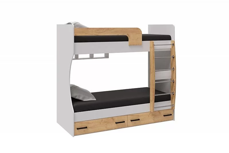ЛЮЧИЯ Кровать двухъярусная с 2мя ящ.(с/м 800*1860мм), ЛДСП Белый/ЛДСП Дуб крафт золотой НАСТИЛ