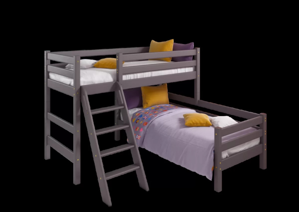 Угловая кровать Соня с наклонной лестницей Лаванда