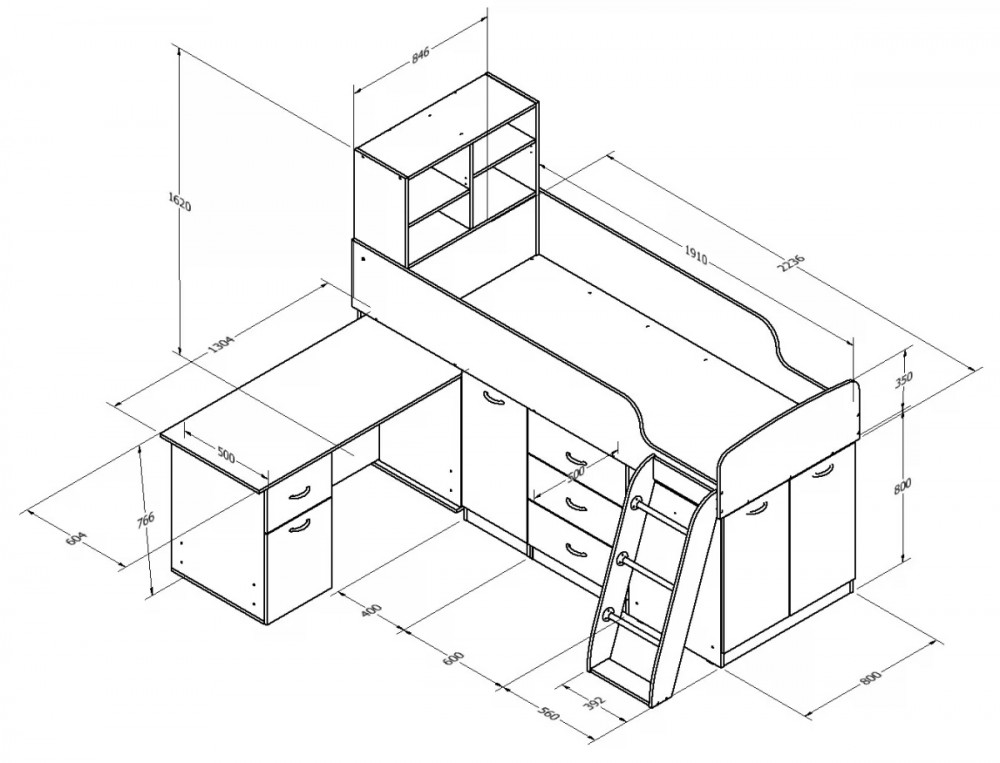 Кровать-чердак "Дюймовочка-1" подойдет для детской или подростковой комнаты. Это многофункциональный комплекс, который объединяет удобное спальное место размером 190*80 см, множество мест для хранения вещей: открытые и закрытые полки, ящики. А также полноценный рабочий стол, который можно поставить отдельно от кровати. Прочная конструкция рассчитана на детей от 1 года до 16 лет.