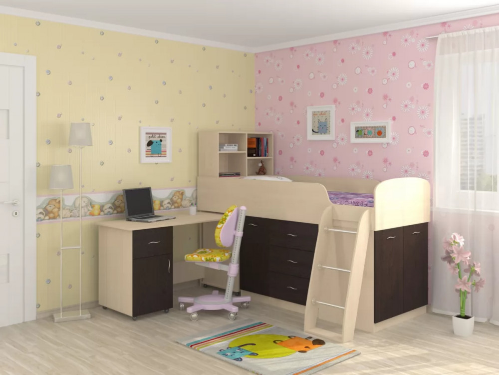 Такой уголок экономит пространство в детской комнате, при этом обеспечивая все необходимые функции.