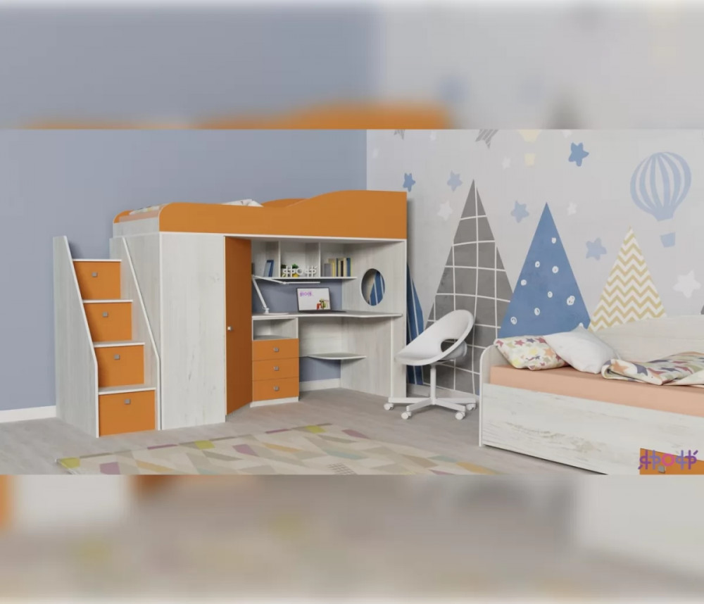 Кровать-чердак Кадет 1 с универсальной лестницей Ярофф