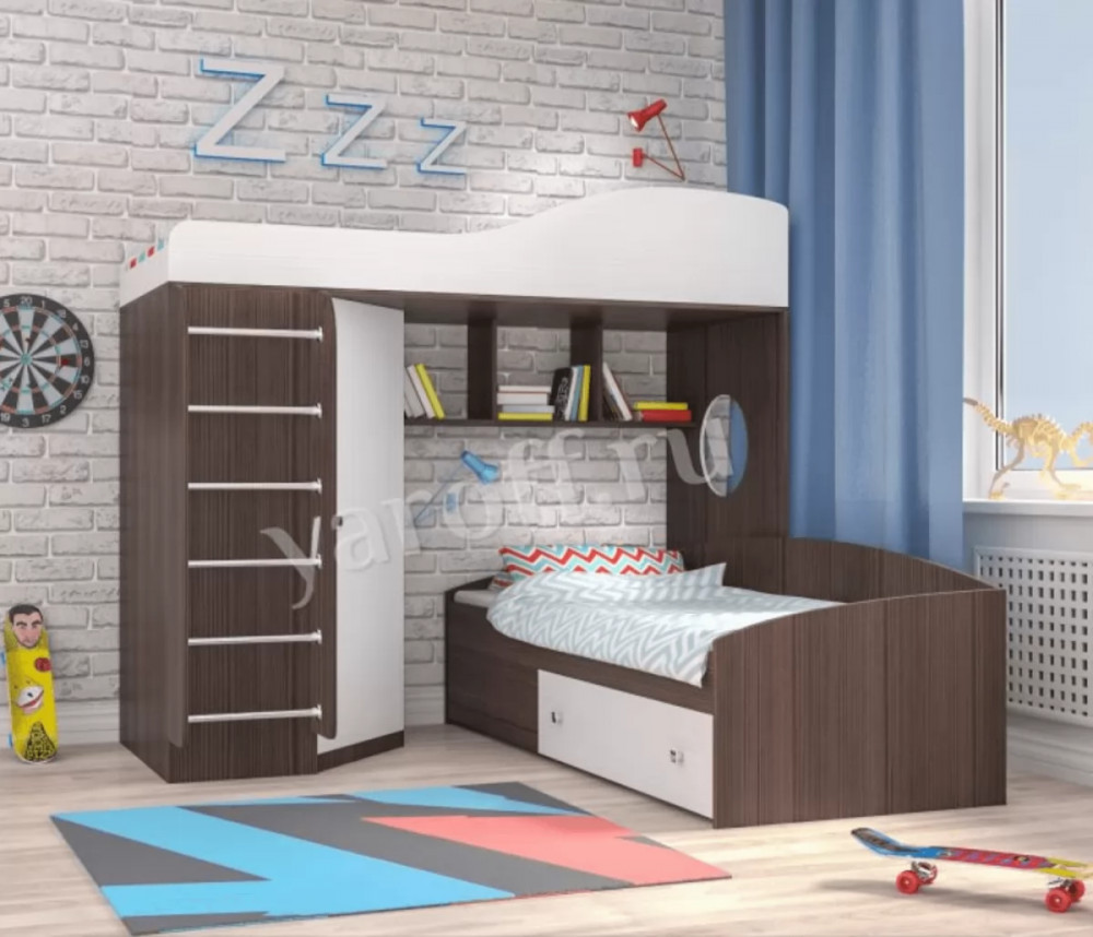 Кровать-чердак Кадет 2 с металлической лестницей Ярофф