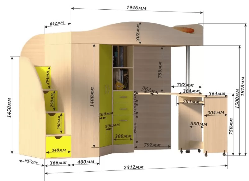 | Тип кровати | Чердак |