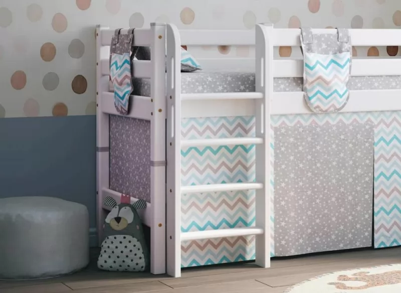 Низкая кровать Соня с прямой лестницей Белый