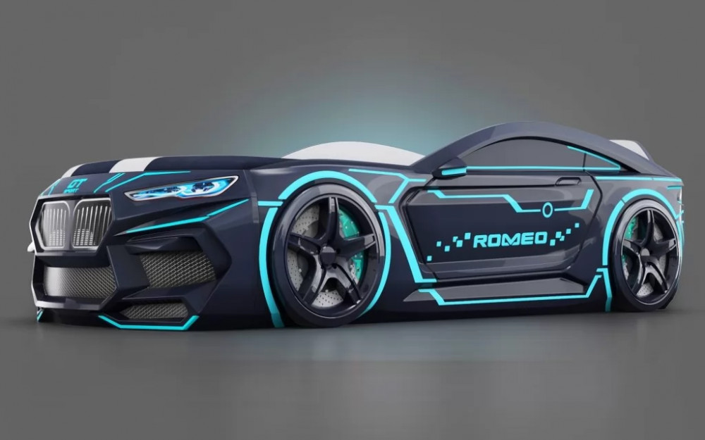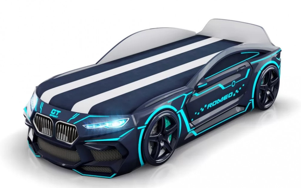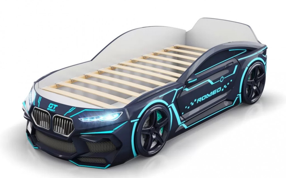 Кровать ROMEO Неон на ламелях с ЭКО матрасом и подсветкой фар