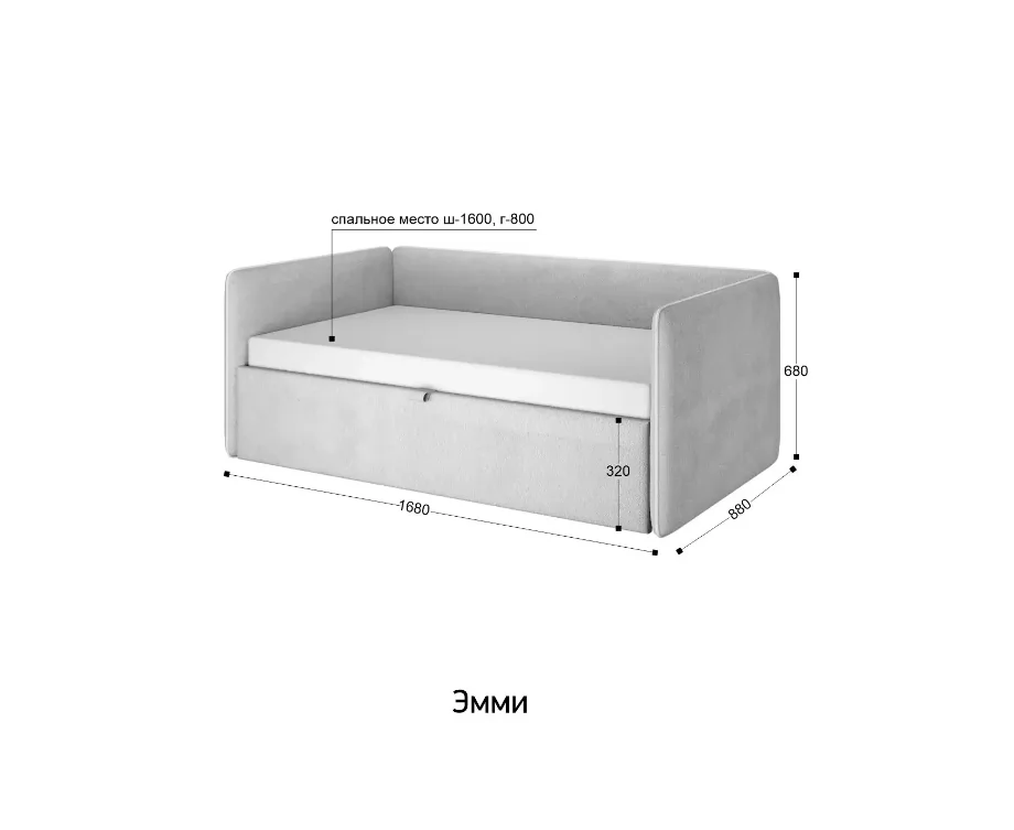 Эта кровать идеальный выбор для детских комнат. Сочетает в себе стильный дизайн и практичность. Небольшие габариты и удобный ящик для хранения позволяют экономить пространство.