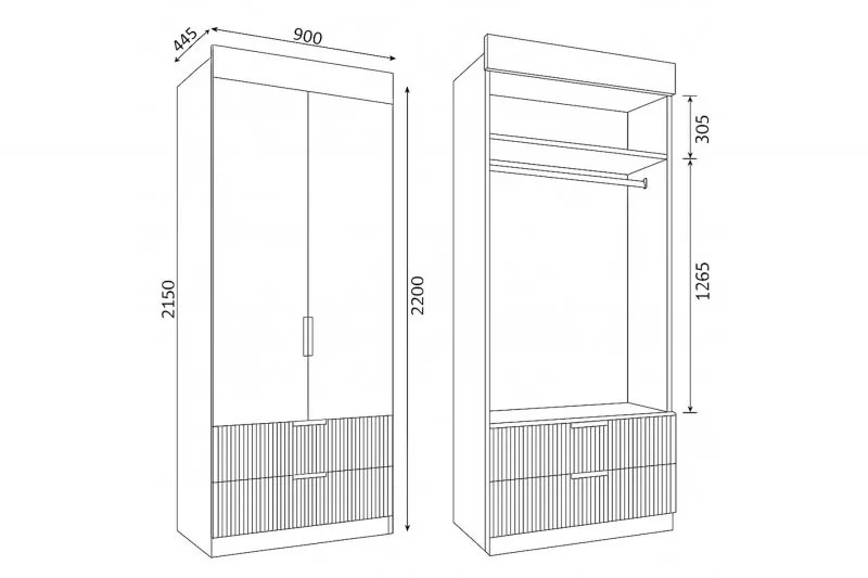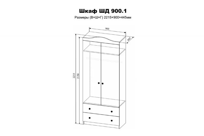 ЛАВИС ШД 900.1 Шкаф 2х дв., 2ящ (ш900*г445*в2200мм), белый