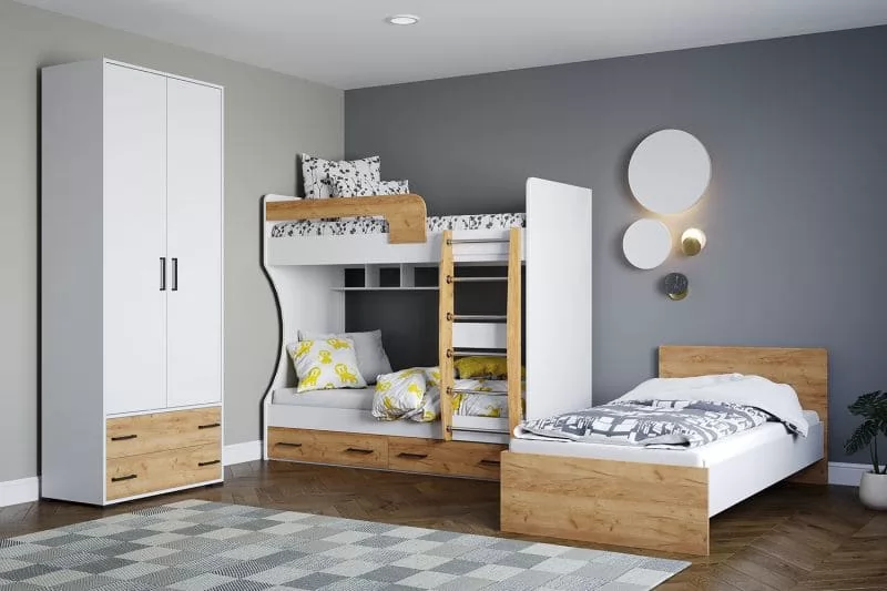 ЛЮЧИЯ Шкаф 2-х ств. и 2-мя ящ (ш850*г453*в2200мм), ЛДСП Белый/ЛДСП Белый - Дуб крафт золотой