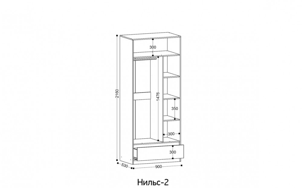 | Размер (ВхШхГ): | 2160х900х530 мм |