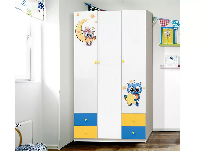 Шкаф 2-х дверный комбинированный с ящиками и зеркалом Совята 2.1