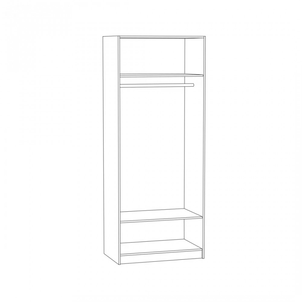 Двухстворчатый шкаф из модульной серии "Альфа" поможет разместить гардероб вашего ребенка. За двумя распашными дверьми находится широкая штанга для вешалок-плечиков. Антресольная и нижняя полки предназначены для хранения одежды, различных аксессуаров и коробок с обувью.