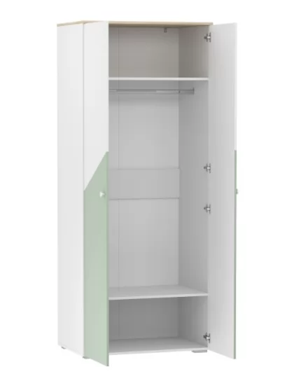 Двухстворчатый шкаф НМ 041.42 Банни поможет организовать хранение вещей в детской. Внутри модуля предусмотрены овальная штанга для одежды на вешалках. Широкие антресольная и нижняя полки подойдут для размещения коробок и аксессуаров. Классические глухие фасады надежно защитят содержимое шкафа от влаги и пыли.