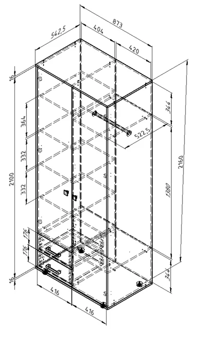 | Размер (ВхШхГ): | 2160х880х550 мм |