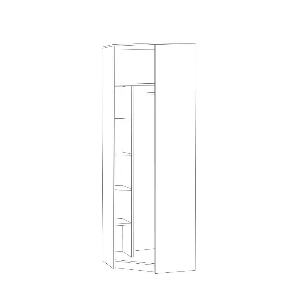Шкаф угловой "Флоренция" №13.123 включает в себя полки и штангу для одежды. Модель привлекает внимание классической геометрией и узорчатой фотопечатью. Фасад дополнительно украшен декоративным профилем.