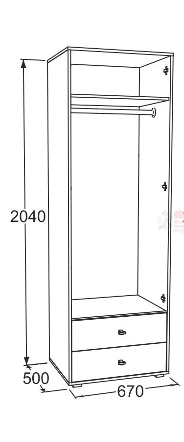 Габариты (ВхШхГ): 2040х670х500 мм.