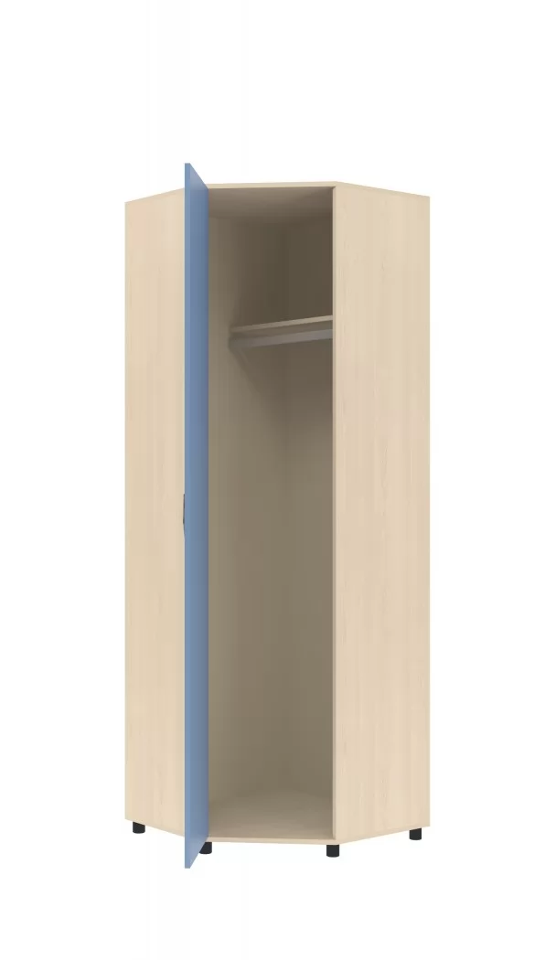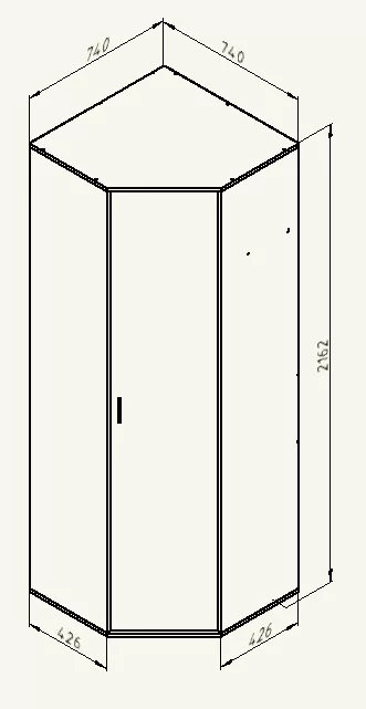 Угловой шкаф "Дельта-1" - это функциональный предмет мебели для хранения одежды и других вещей. Вместительный шкаф включает в себя 1 полку и большое вертикальное отделение со штангой для плечиков, с другой стороны выдвижная штанга для брюк.