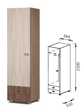 Шкаф для платья ПМ-13 "Юниор-6" Ясень шимо темный/Ясень шимо светлый/Дуб темный