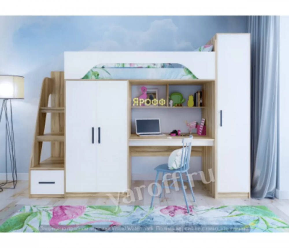 Приобретение кровати возможно как на рисунке — кровать чердак + шкаф пенал, так и по отдельности.