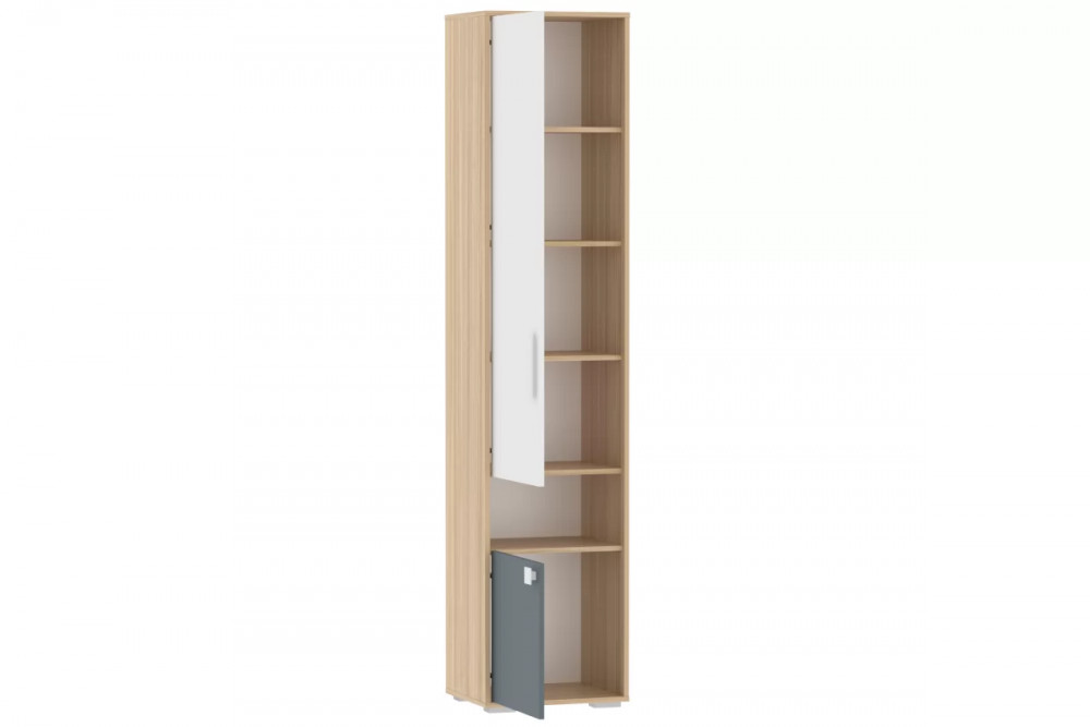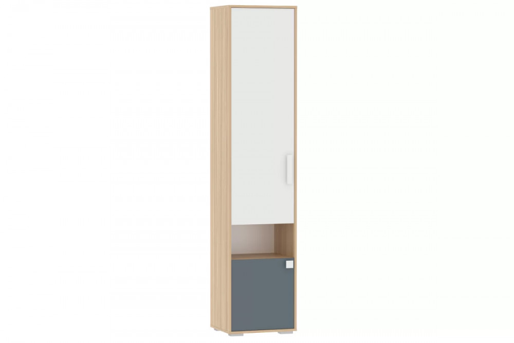 В шкафу можно удобно расположить книги, школьные принадлежности и игрушки. Высота полок фиксирована. Шкаф-пенал является модульным, что позволяет комбинировать его с другими предметами коллекции. Возможна право- и левостороння сборка.