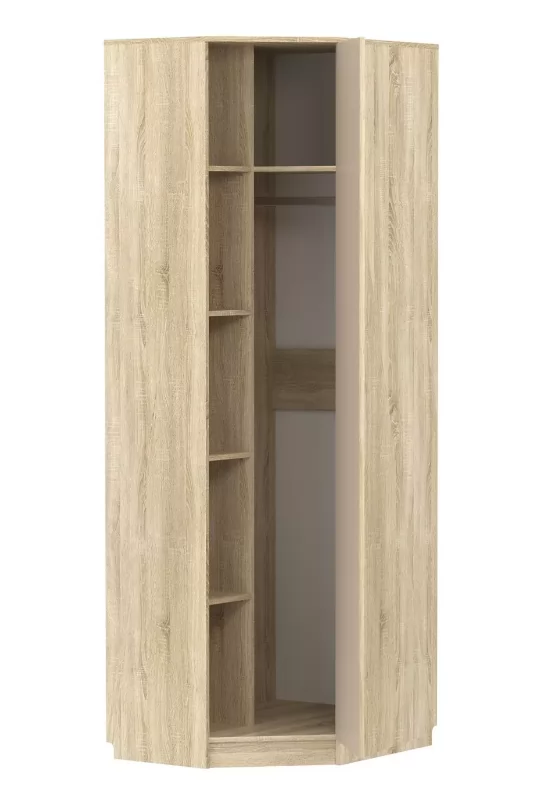 Шкаф «Акварель» предназначен для тех, кто любит практичность и комфорт. Шкаф обладает модным сочетанием материалов, цветов и подчеркивает настроение детства – радость новизны и жажду открытий. С угловым шкафом «Акварель» получится максимально использовать пространство в комнате, задействовав место в углу. Внутри модуль разделен на две функциональные зоны. Секция с пятью полками подходит для хранения одежды в сложенном виде, а на штанге в другой половине шкафа можно разместить одежду на вешалках-плечиках. Широкая полка, расположенная над штангой, удобна для хранения коробок.