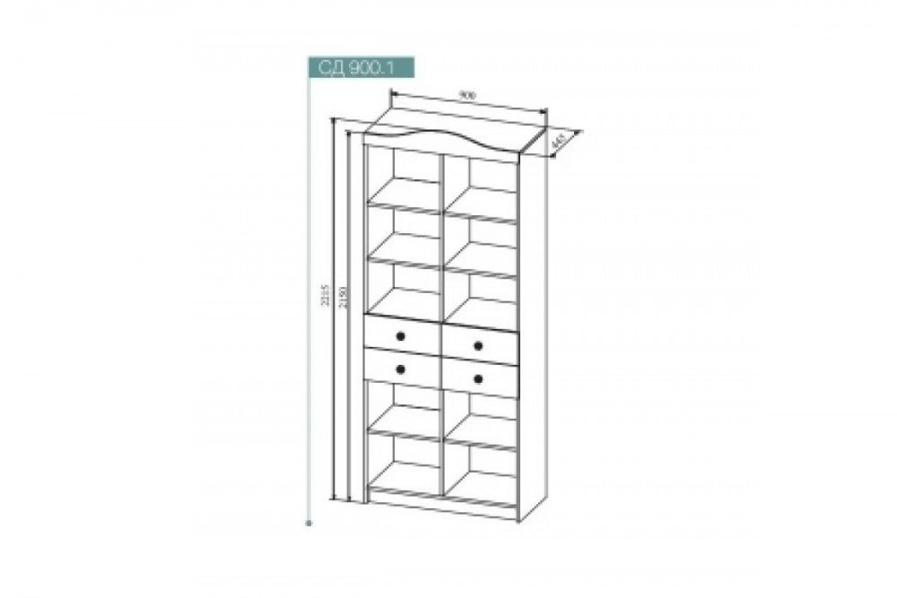 KI-KI СД900.1/2 Стеллаж 900 с ящ (ш900*г445*в2215мм), ЛДСП белый/МДФ белое дерево