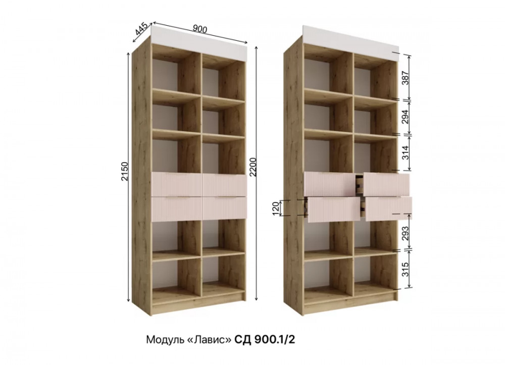 ЛАВИС ШД 900.1 Шкаф 2х дв., 2ящ (ш900*г445*в2200мм), белый