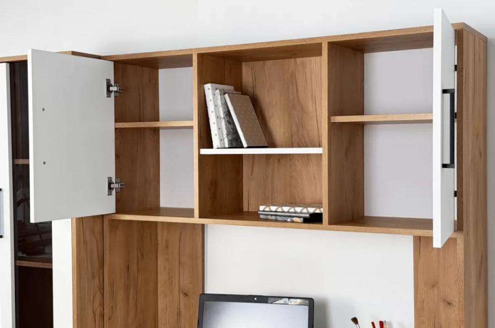 Надстройка Лайт-2 является универсальным дополнением к компьютерным столам. Она оборудована нишами для важных мелочей и шкафами для канцелярии, что делает ее не только практичной, но и стильной.