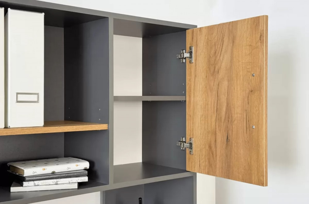 Надстройка Лайт-2 является универсальным дополнением к компьютерным столам. Она оборудована нишами для важных мелочей и шкафами для канцелярии, что делает ее не только практичной, но и стильной.