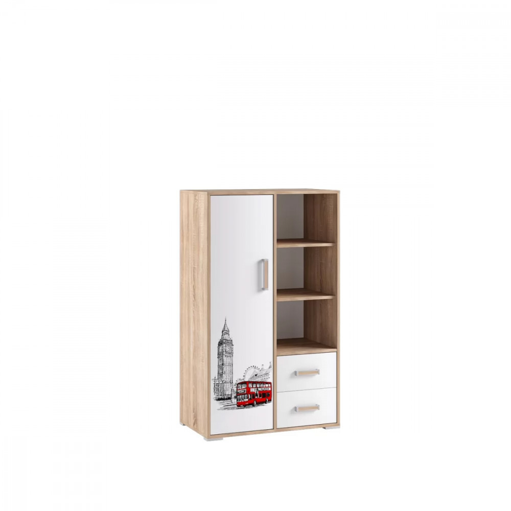— Корпус выполнен из ЛДСП цвета «Дуб Сонома», внутренние фасады двух видов: Белый с тиснением «Древесные поры» или Белый с тиснением «Древесные поры» + фотопечать.