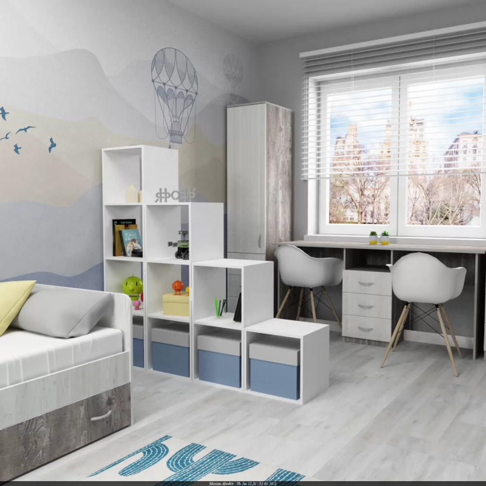 Набор детской мебели «Лео» №1 Гикори джексон/Белый матовый/Дымчатый зеленый