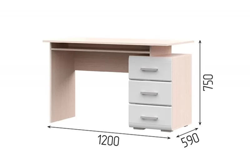 СИМБА Стол письменный (ш1200*г590*в750мм), Белый глянец