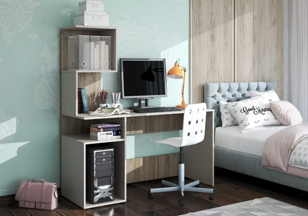 Блок с полками. Состоит из одного щита, на который крепится блок из полок и открытой ниши под столешницей письменного стола.