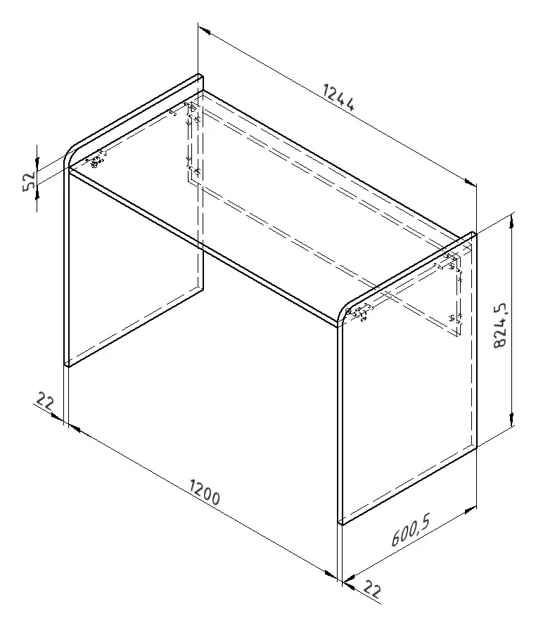 Модуль изготовлен из ЛДСП толщиной 22 мм белого цвета, кромка серого цвета.