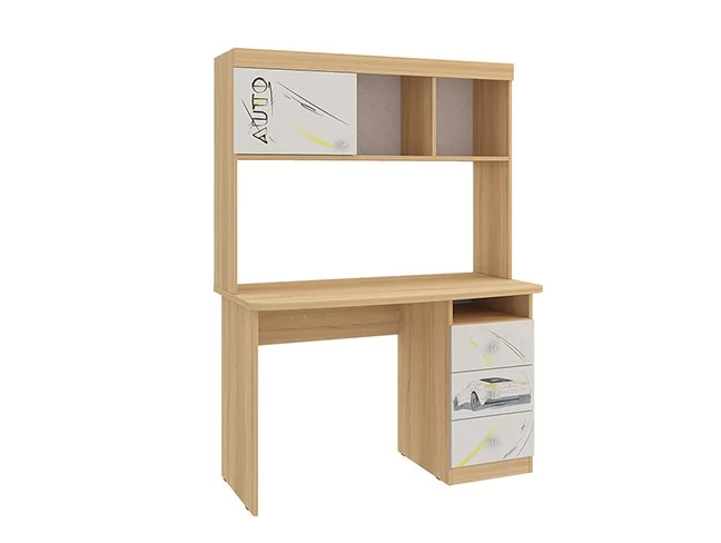 Стильный стол «Форсаж» – мечта каждого мальчика. Компактный стол прекрасно впишется даже в маленькое пространство детской комнаты. Удобная столешница подойдет как для письма, так и для занятий на компьютере или ноутбуке. Открытые полки и закрытые ниши надстройки стола хорошо подходят для хранения учебников и школьных принадлежностей. В 3-х выдвижных ящиков поместится все, что необходимо для учебы и творчества. Эффектный принтерный рисунок на фасадах выдержан в общем стилистическом решении. Рисунок устойчив к истиранию и ультрафиолету.