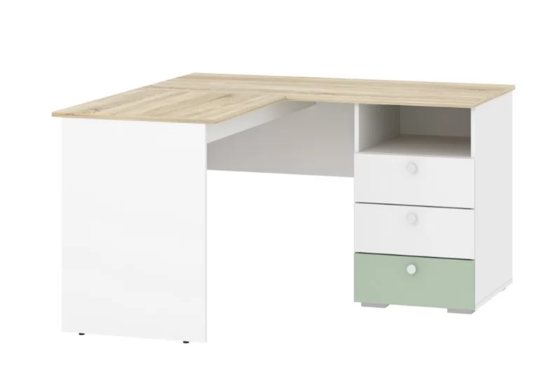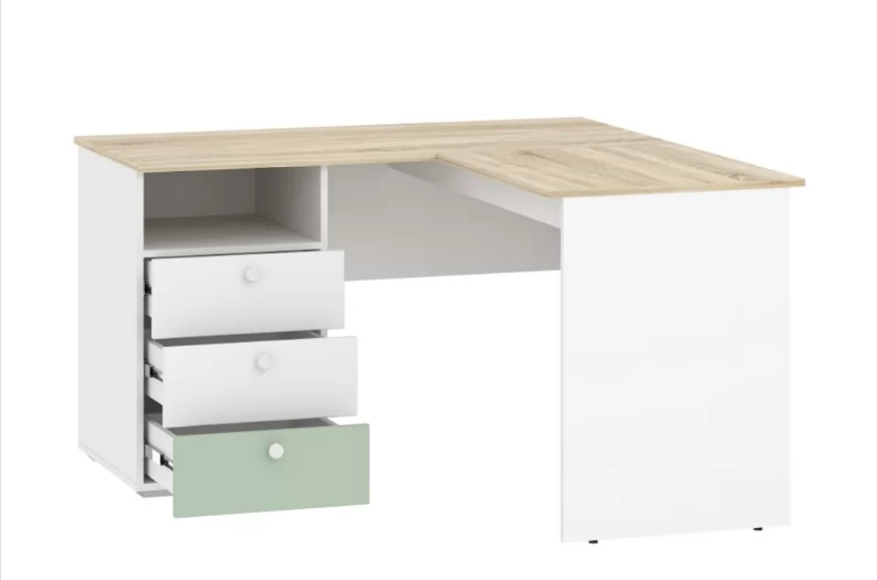 Стол письменный угловой НМ 041.41 Банни поможет оборудовать в комнате подростка комфортное и эргономичное рабочее пространство. Модель позволит задействовать обычно пустующее место в углу, освободив больше пространства для зоны отдыха. На рабочей поверхности модуля достаточно места для размещения не только письменных принадлежностей, но и ноутбука. Закругленные углы столешницы делают эксплуатацию модуля безопасной для ребенка. По окончании занятий ребенок сможет убрать книги и тетради в выдвижные ящики для поддержания порядка на рабочем месте.
